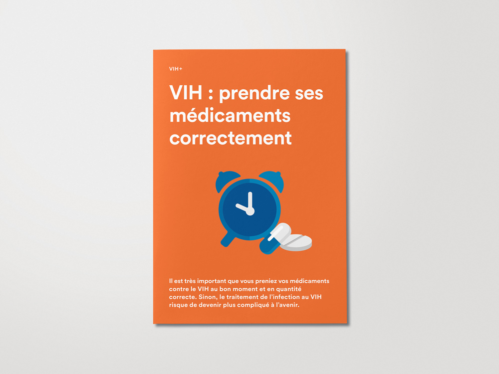 Ce dépliant illustré explique pourquoi il est important de toujours prendre les médicaments contre le VIH au bon moment. Un dépliant de la série « VIH+ ».