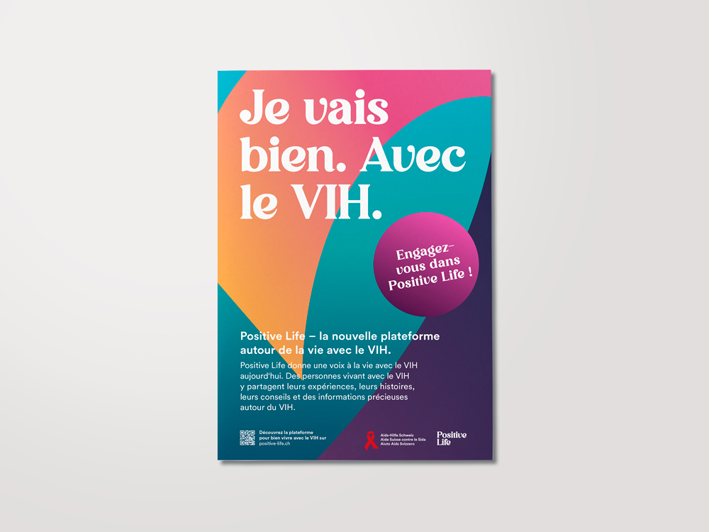 Affiche "Je vais bien. Avec le VIH." pour promouvoir la nouvelle plateforme positive-life.ch